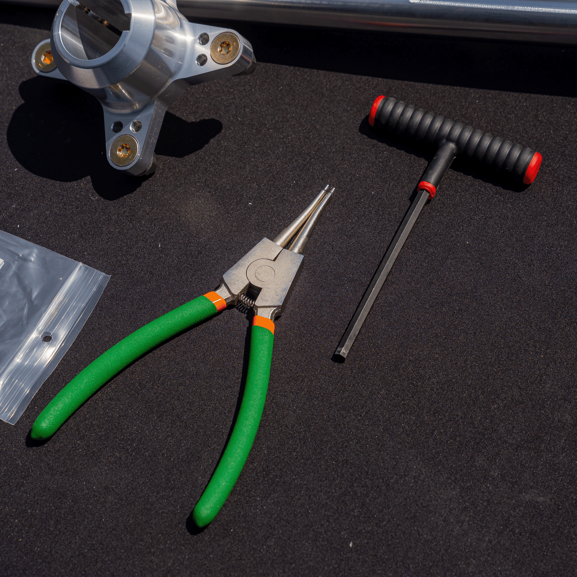 What's in the box:1) 40mm Drag Axle 2) Wheel hubs 1) Sprocket Hub 1) Brake hub 2) Snap rings 4) Axle Keys 1) Snap Ring Tool 1) Hex Wrench 1) Warranty info |